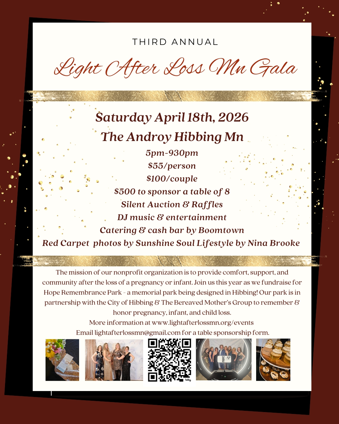 We are so excited to be hosting our 3rd annual Red Carpet Gala. Our event takes place on Saturday April 18th 2026 at The Androy downtown Hibbing. Our Red Carpet Gala theme will bring a night of elegance and class while raising funds for our very important mission – see more information below.